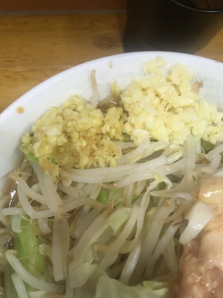 ・Menu Items in Japanese: ラーメン 小 追加100g汁なし(新しい味) アブラ ニンニク しょうが