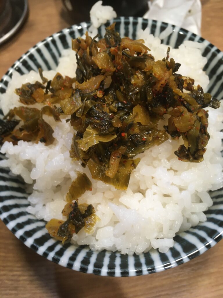 A classic move is simply topping your rice with Takana (spicy pickled mustard greens)! This combination alone is so good, you could easily eat three bowls of rice. This is an essential finishing move.